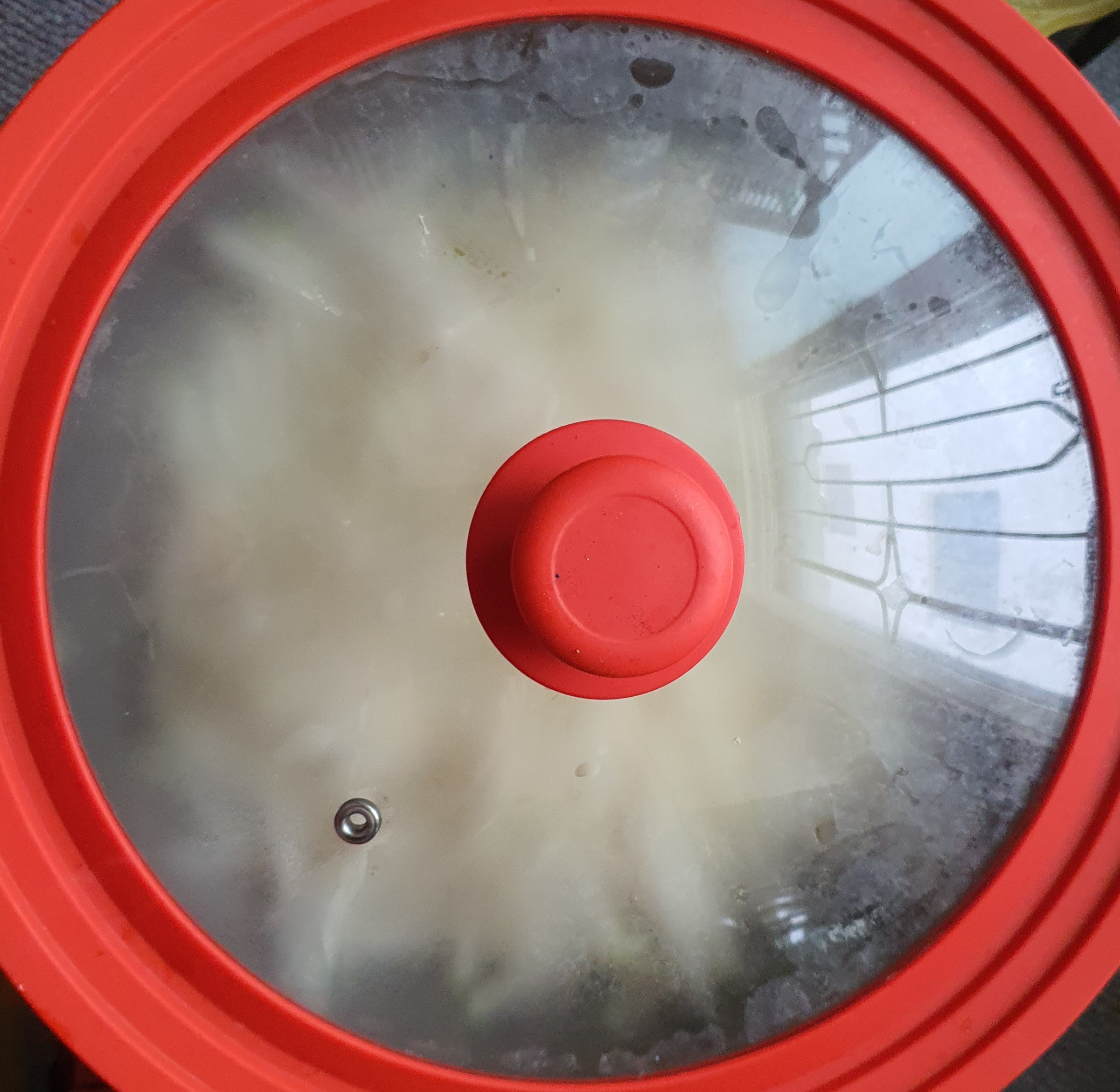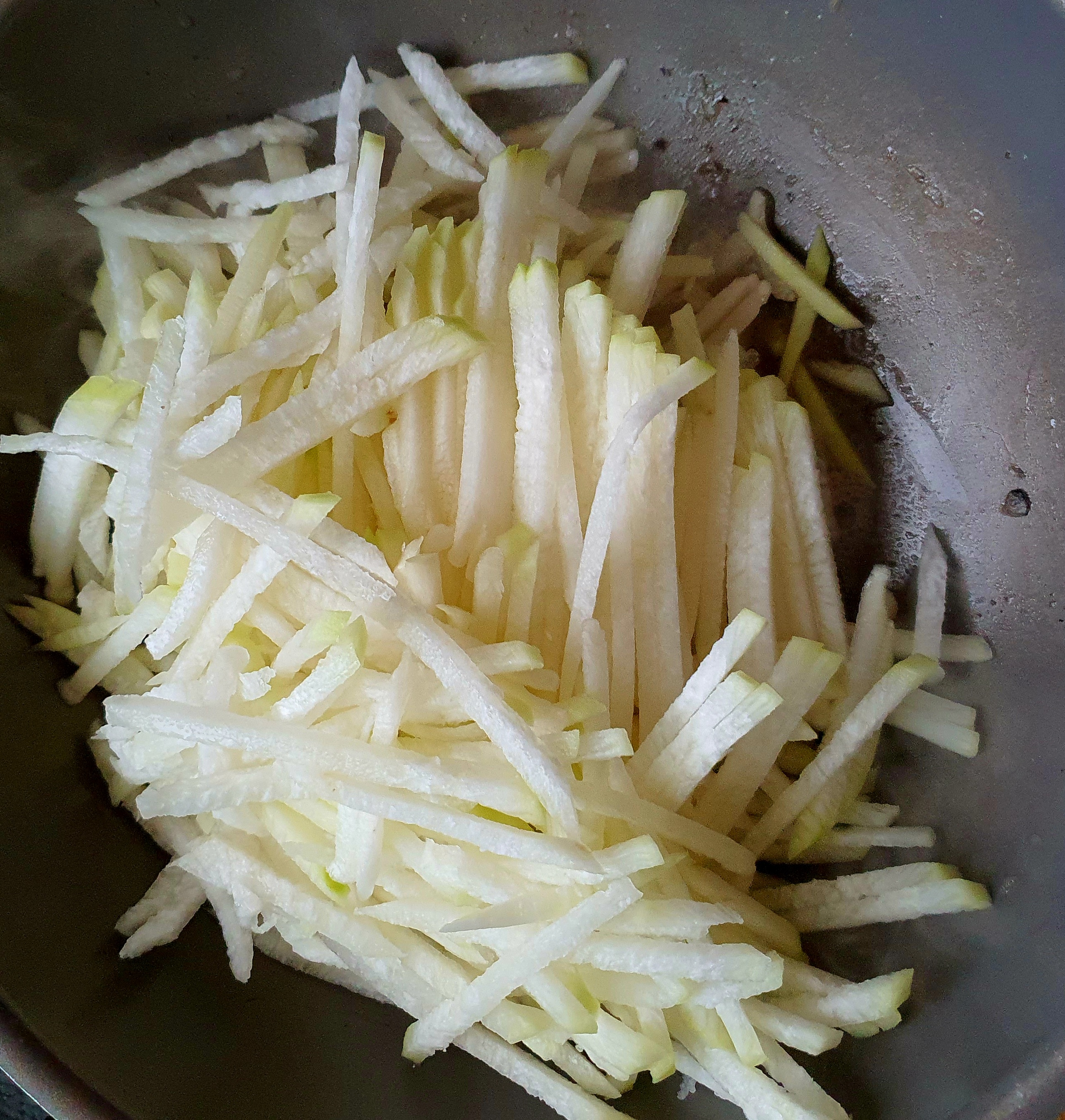 • 불을 약불로 줄이고 뚜껑을 덮고 1분정도 무를 익혀준다.